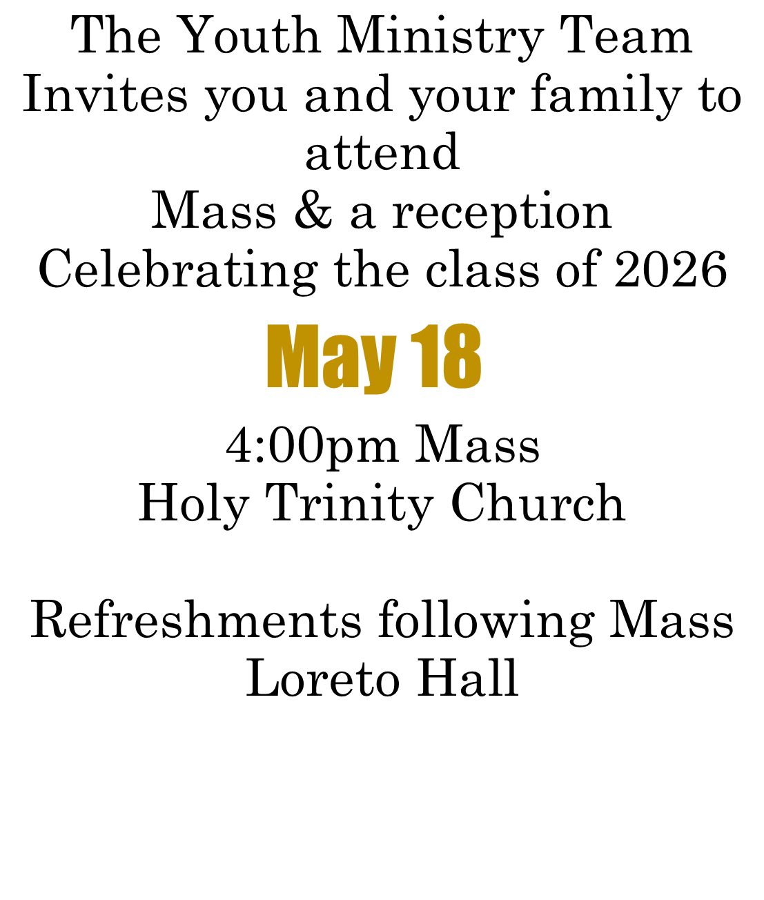 Graduates should arrive in Loreto Hall by 3:30pm with cap and gown